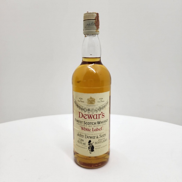• DEWARS  WHITE LABELFinest Scotch Whisky  1 Litre  43% volJohn Dewar & Sons Ltd., Perth  Scotland Garrafa vintage do tradicional Dewars White Label, em sua apresentação clássica de 1 litro, com graduação alcoólica 43% vol (formato superior ao padrão atual, que é 40%).Rótulo frontal no estilo antigo, destacando as medalhas históricas de premiação e o brasão da casa. A garrafa mantém a tampa e o lacre originais, com leve desgaste natural do tempo, sem prejuízo à integridade do conteúdo. Versão produzida pela John Dewar & Sons Ltd., Perth, Scotland, muito anterior à padronização moderna da marca