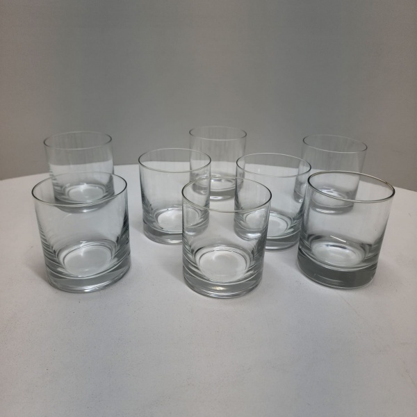 • Conjunto composto por oito copos baixos (old fashioned) em demi-cristal transparente, com paredes espessas e base trabalhada em rebaixo circular. Peças de brilho límpido e excelente sonoridade, próprios do cristal semichumbado. Ideais para whisky, drinks ou serviço de mesa refinado. Dimensões:9x8 centímetros.