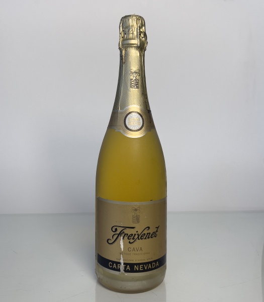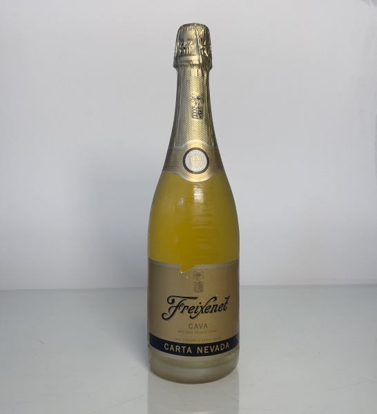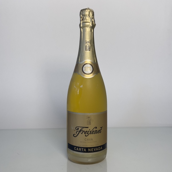 • Espumante espanhol Freixenet Carta Nevada, tipo Cava Semi Seco, método tradicional. Garrafa de 750 ml, coloração dourada e rótulo clássico. Apresenta marcas de uso/armazenamento no rótulo e cápsula. Perfil leve e frutado.