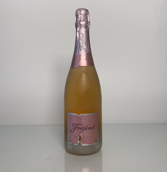 • Espumante espanhol Freixenet Rosé Premium Cava, elaborado pelo método tradicional. Garrafa de 750 ml, com coloração rosada e perfil leve e frutado. Rótulo e cápsula apresentam sinais de desgaste e armazenamento.