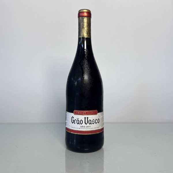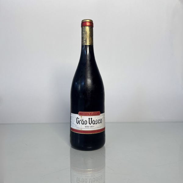• Garrafa de vinho tinto português Grão Vasco, safra 2011, produzida na região do Dão, Portugal, sob denominação de origem controlada (DOC). Rótulo tradicional da vinícola, apresentado em garrafa de 750 ml com rótulos originais.