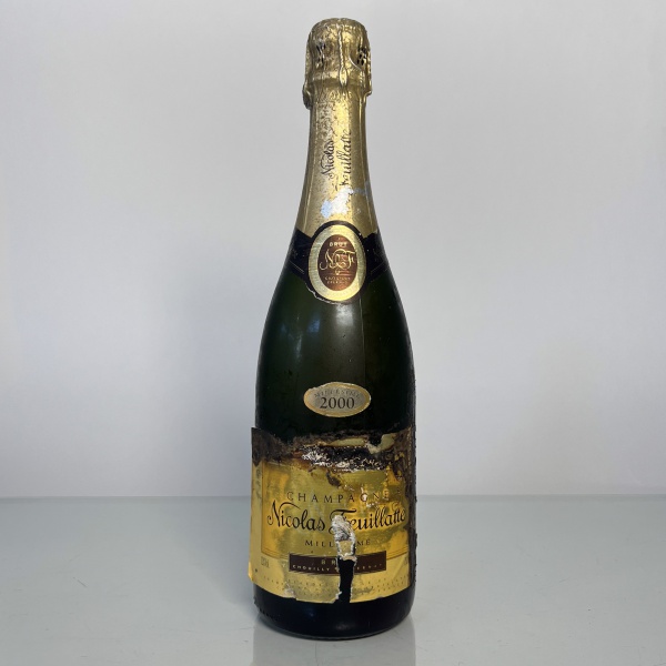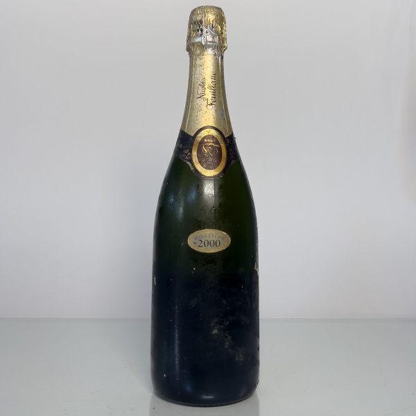 • Champagne francês Nicolas Feuillatte Millésimé 2000, safra especial. Garrafa de 750 ml, rótulo clássico dourado.