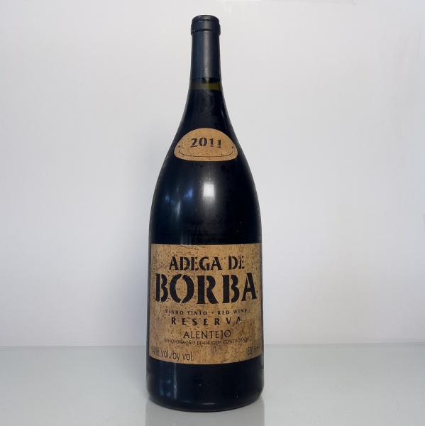 • Vinho tinto português Adega de Borba Reserva, safra 2011, da região do Alentejo (DOC). Apresentado em garrafa magnum (1,5 litros), com perfil encorpado e típico dos vinhos da região.