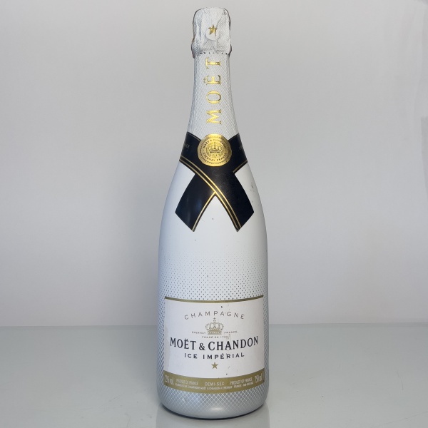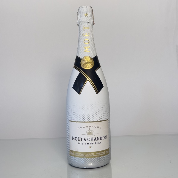 • Garrafa de champagne francês Moët & Chandon Ice Impérial, classificação Demi-Sec, produzida na região de Champagne, França. Rótulo moderno da maison, desenvolvido para consumo com gelo, apresentado em garrafa de 750 ml com design característico branco.